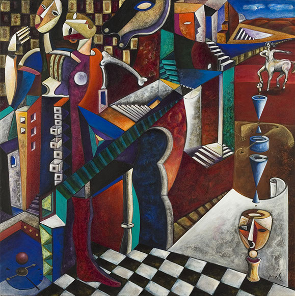 HISTORIAS PINTADASY CUENTOS DE AMOR Tiempos DoradosÓleo sobre tela120 x 120 cm