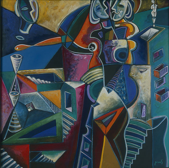 HISTORIAS PINTADASY CUENTOS DE AMOR Baile de máscarasÓleo sobre tela120 x 120 cm
