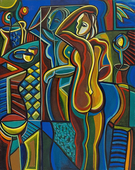 HISTORIAS PINTADASY CUENTOS DE AMOR Frente al espejoAcrílico sobre tela120 x 150 cm