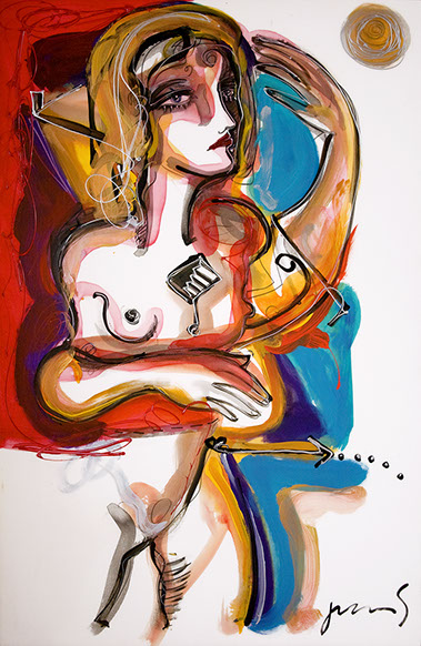 Pinceladas seguras y una precisa gama cromática nos transporta dentro de la obra y nos hace dialogar con ella. El uso del color es una de las características más importantes de esta exposición; siendo esta una constante, usando el turquesa cobalto, el azul, el rojo, el ocre, el naranja y sobre todo el blanco como vacio (silencio) y el negro como la nota que ajusta la pieza exactamente al mensaje pictórico… plasmados en un estallido como si estuviera gritando su alma...”